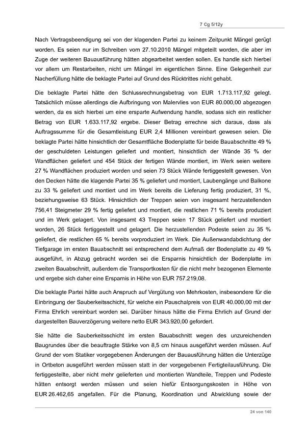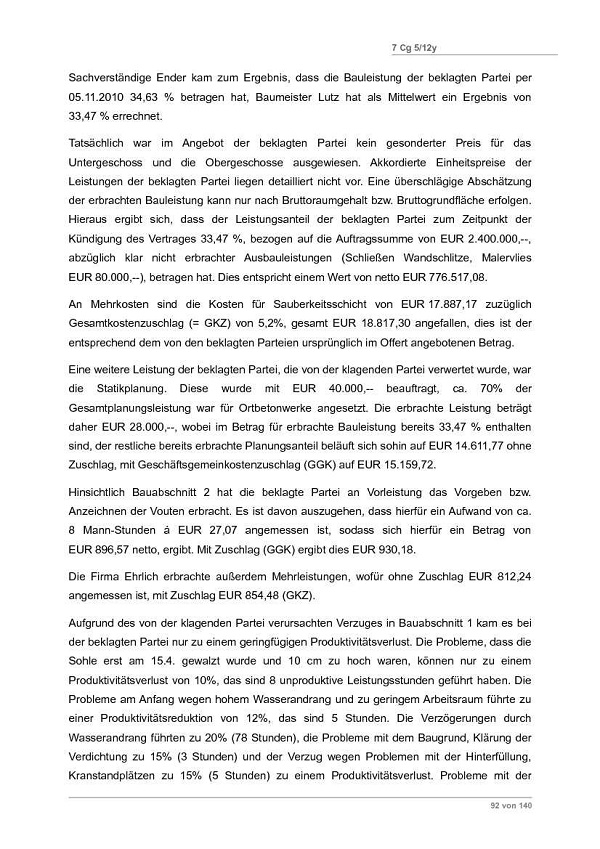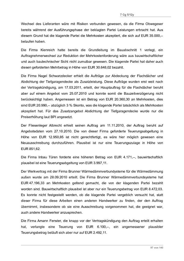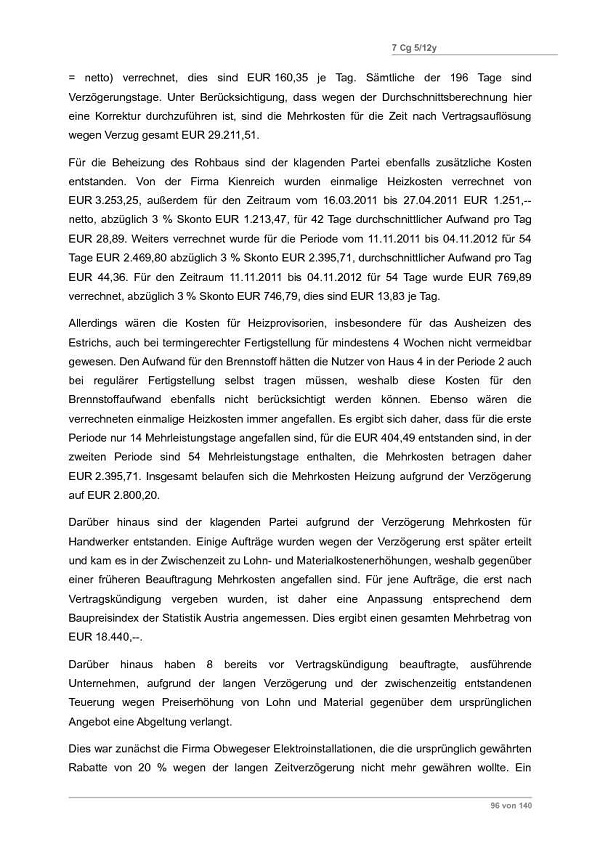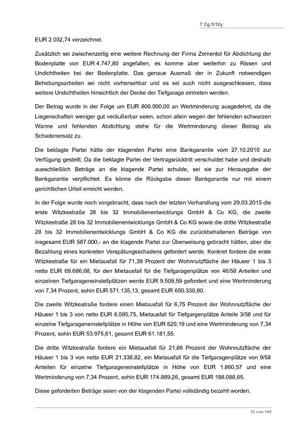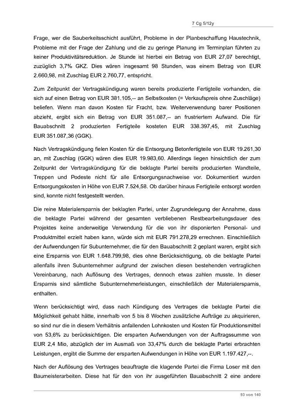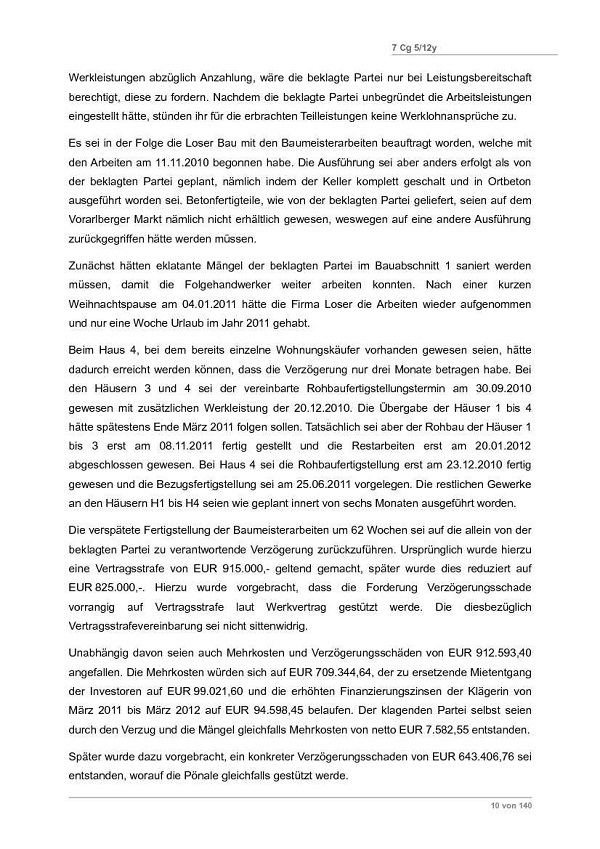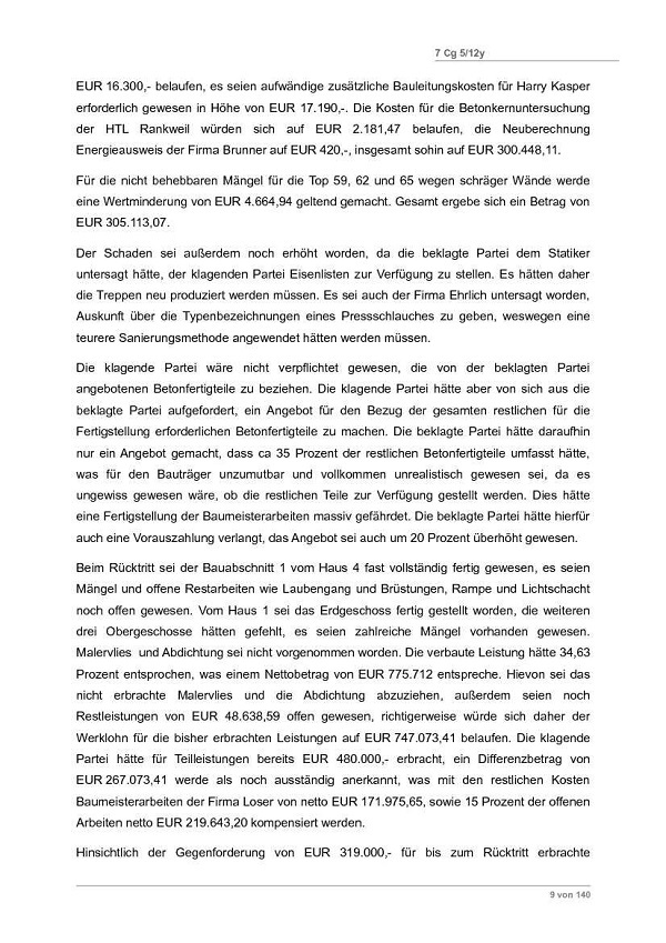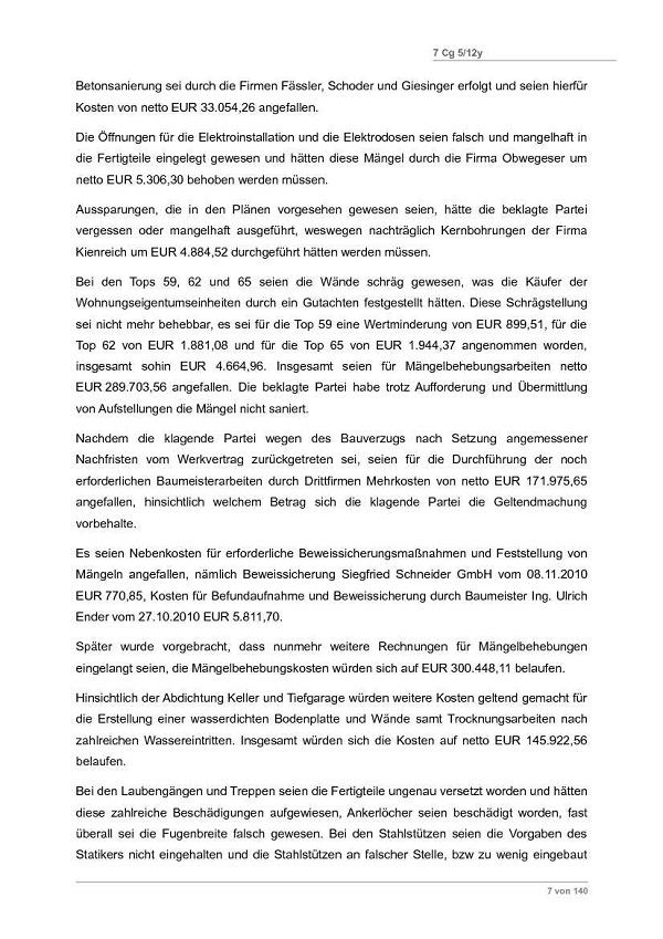- Gesamtschaden für Bauherrn € 921.844 (=113% der verbauten Leistung!)