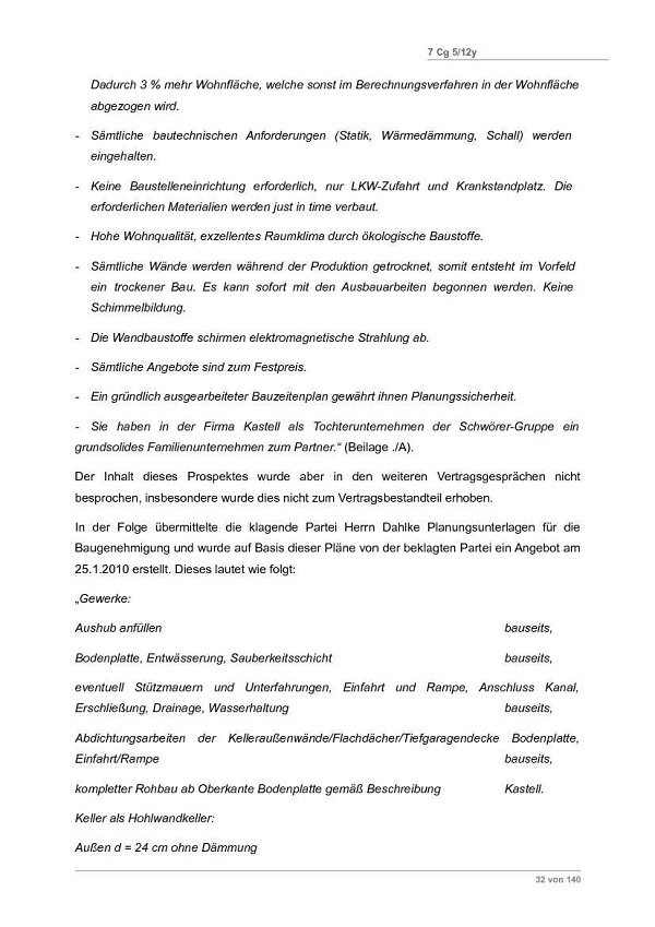 Kastell hat entgegen dem Angebot als Vertragsgrundlage (Liaporwände LAC2) nur Normalbeton (ohne jegliche Information) und hat sich Kosten von bis zu € 10.000 erspart.