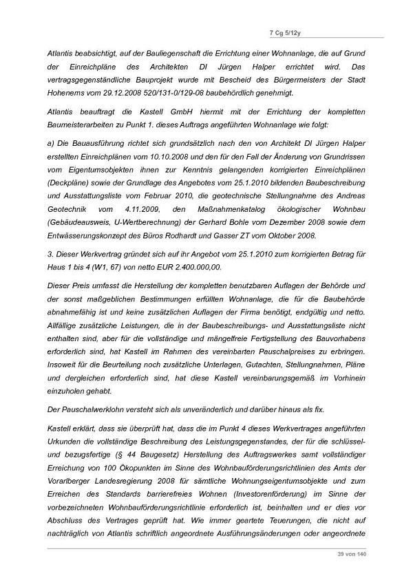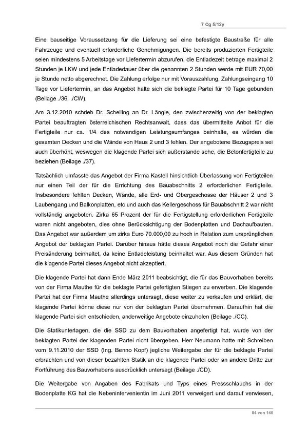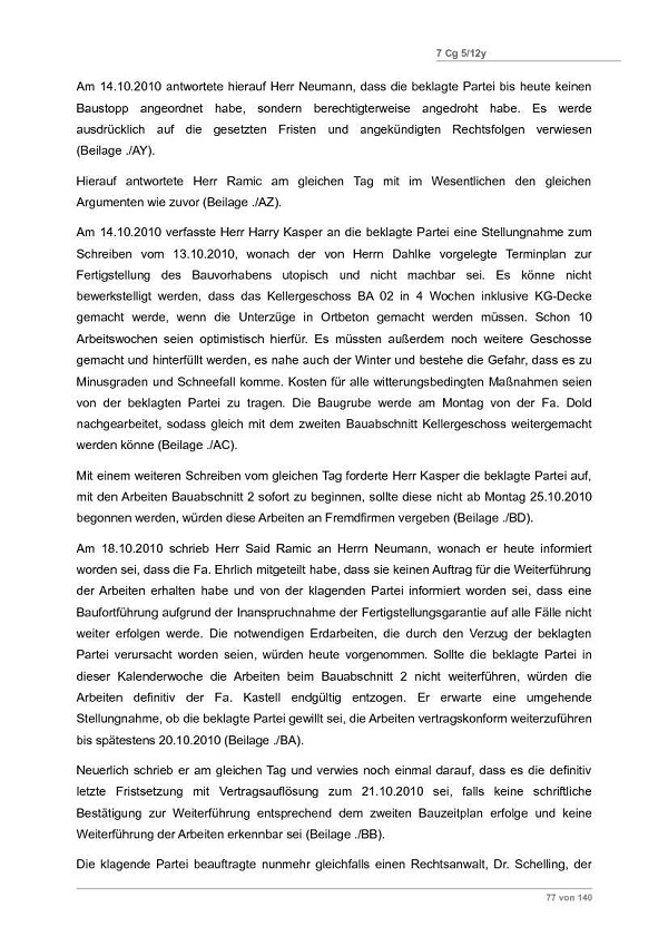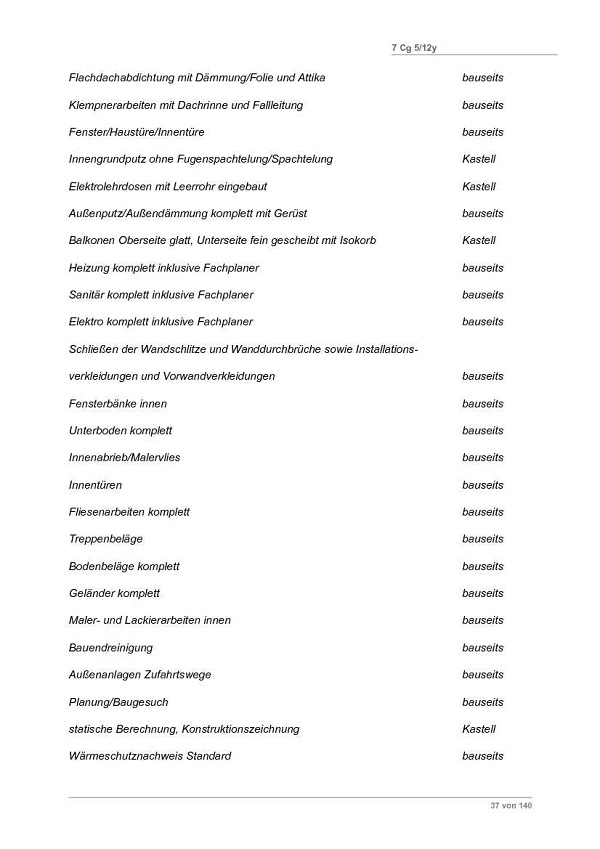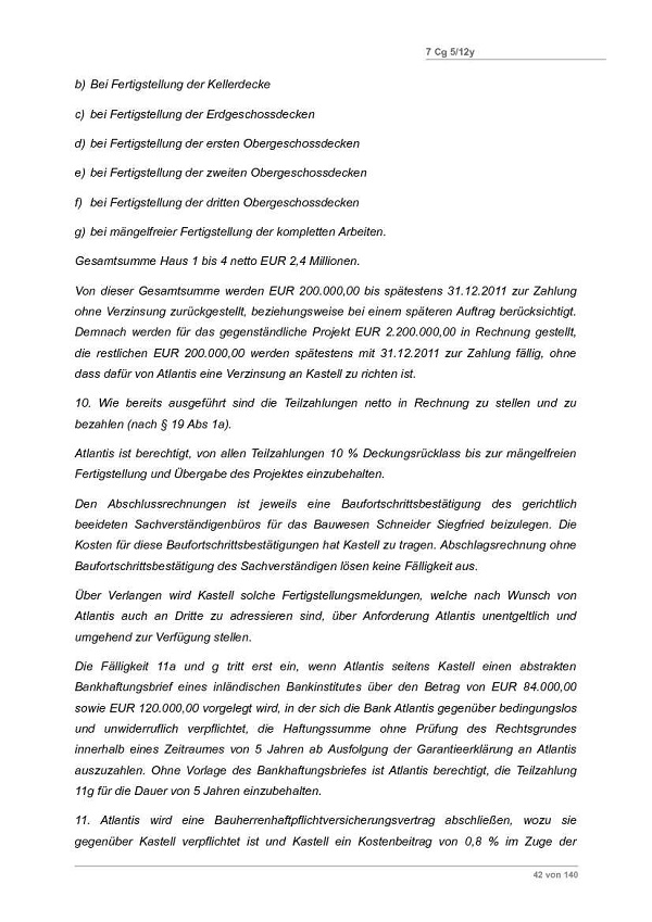 - Kastell hat darüber hinaus Bedingungen für die Baufortführung gesetzt, die vertragswidrig waren!