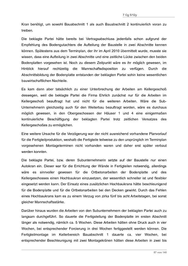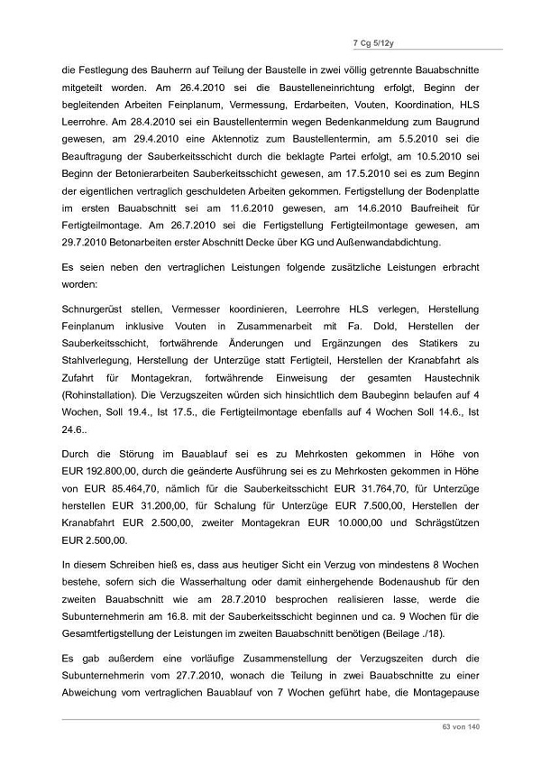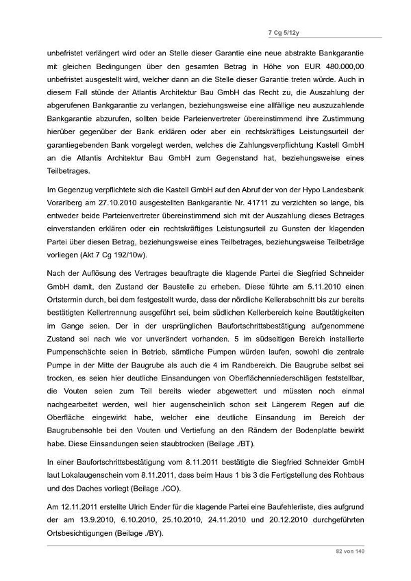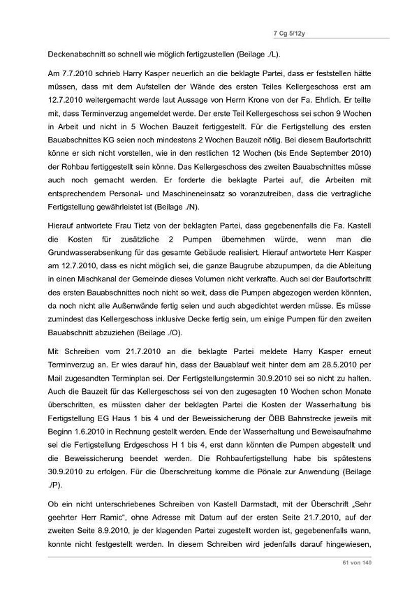 - Kastell hat ungerechtfertigt Arbeiten eingestellt und durch Verschulden von Kastell eine erhebliche Verzögerung verursacht.
