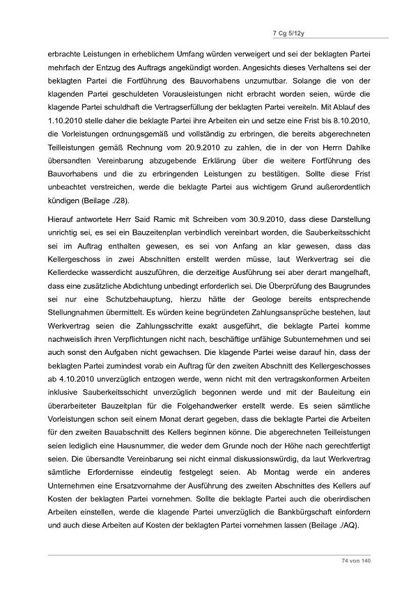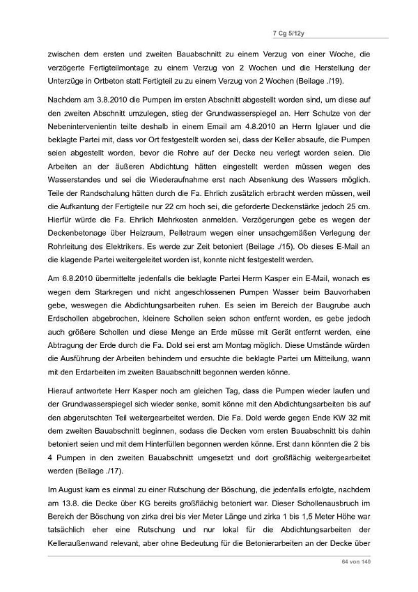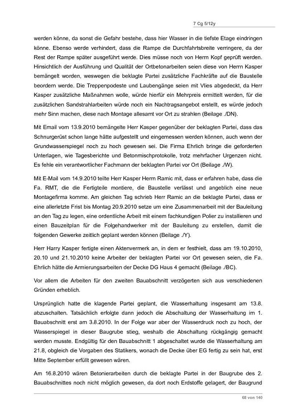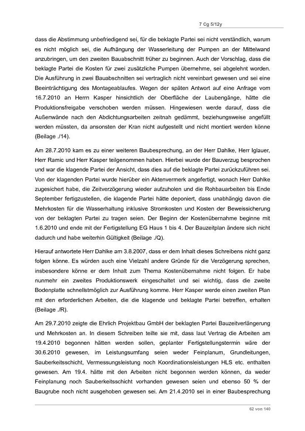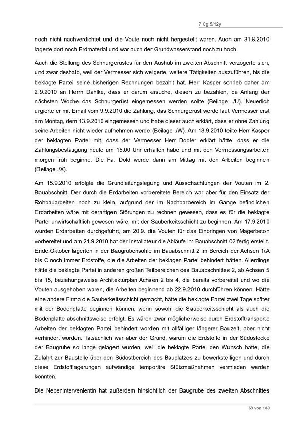 - Kastell hat ungerechtfertigter Weise mit der Behauptung der Baugrund sei nicht ordnungsgemäß verdichtet die Arbeit verweigert und mehrfach Bestätigungen des Geologen, dass der Baugrund problemlos bebaubar ist, ignoriert.