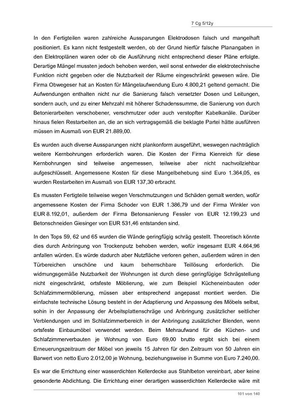 - Mängelbebungskosten € 202.676 (=15% der verbauten Leistung!)
