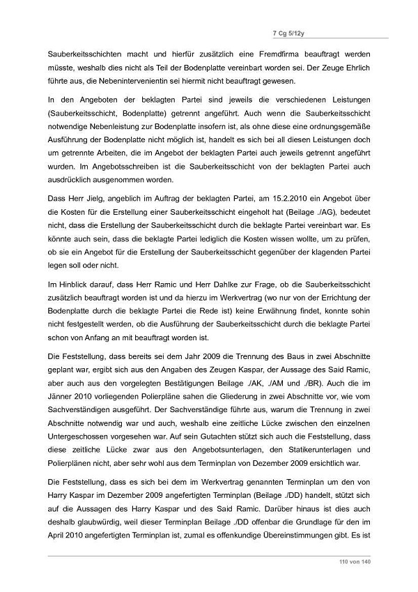 Auch der vom Gericht beauftragte Sachverständige hat dargelegt, dass die Baumeisterarbeiten unprofessionell ausgeführt waren und extrem viele Mängel aufwiesen.